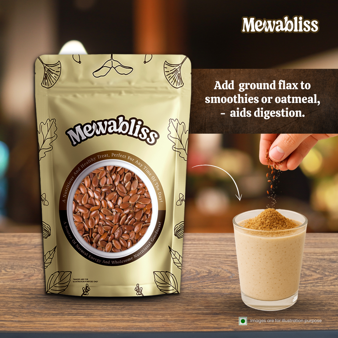 MewaBliss Flax Seeds are a nutrient-dense superfood loaded with plant-based Omega-3 fatty acids, fiber, protein, and antioxidants. Regular consumption helps maintain cholesterol levels, supports digestive health, and promotes radiant skin and strong hair.